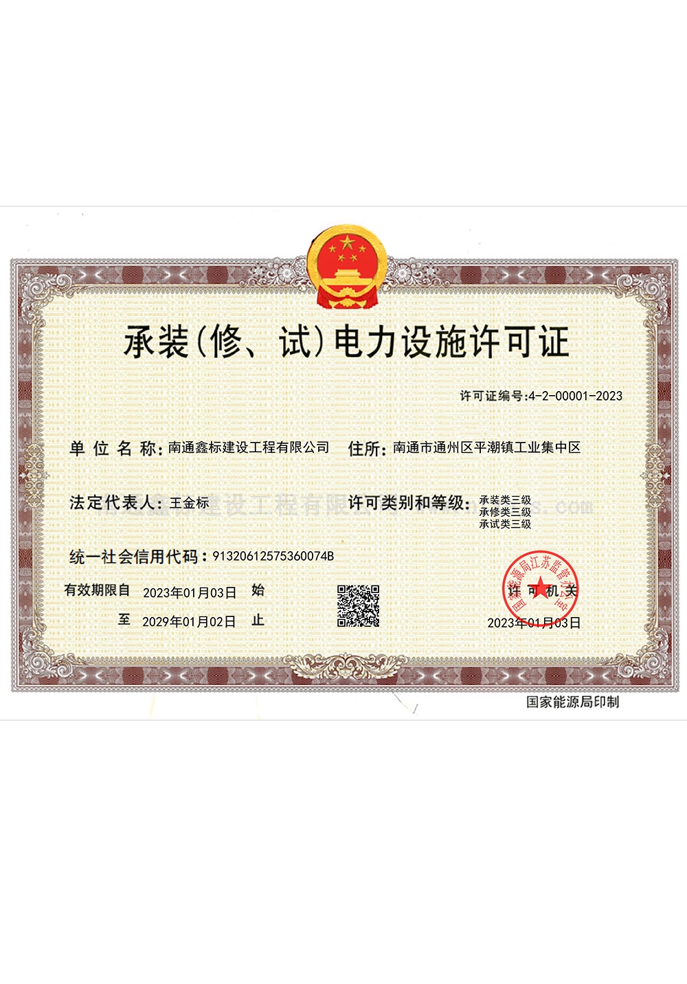 承装(修、试)电力设施许可证